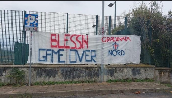 Come riportato da “TeleNord.it” stamattina fuori dal Pio a Pegli è apparso uno striscione con su scritto “Blessin Game Over” firmato Gradinata Nord. Un chiaro messaggio dei tifosi rossoblù che dopo la sconfitta contro il Perugia non sono più a favore che Alexander Blessin sia l’allenatore del Grifone.