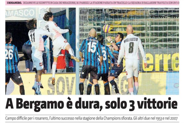 Un anno fa fu un tracollo, ma non ci fu nulla di sorprendente. Il Palermo va a Bergamo e tocca ferro. Nelle 38 partite giocate in lombardia i rosanero hanno vinto soltanto tre volte; sono invece 19 le sconfitte e 16 i pareggi. La prima delle tre vittorie del Palermo risale al 1953, mentre per la seconda è bisognato attendere 54 anni. Era la stagione 2007/2008, quando i rosanero sconfissero l’Atalanta per 3-1. Le reti furono sigliate da Cavani, aut. di Langella e Amauri. Il successo più recente è quello del 2009/2010, quando i rosanero si imposero in extremis per 2-1 grazie ad una rete di Cavani.