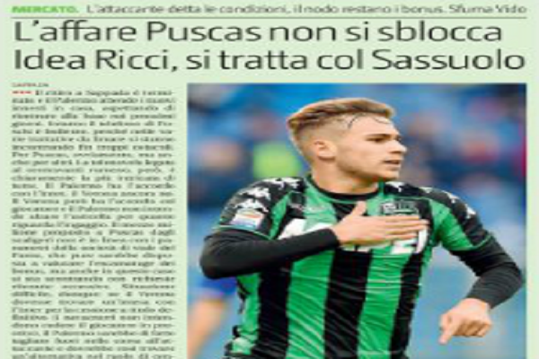 Giornale di Sicilia: “Affare Puscas bloccato, il Palermo vira su Ricci”