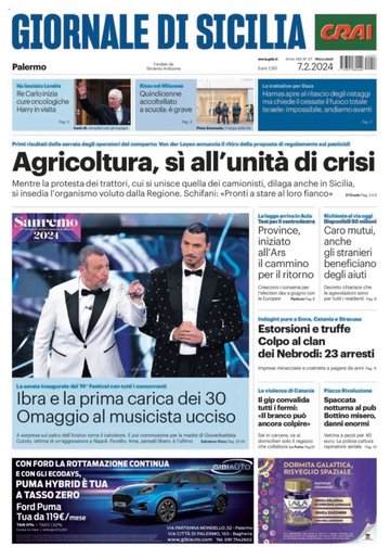 Prime pagine Giornale di Sicilia: “Agricoltura, si all’unità di crisi” Segui Ilovepalermocalcio su Google News Redazione Ilovepalermocalcio Febbraio 7, 2024 L’edizione odierna de “Il Giornale di Sicilia” dedica la prima pagina alla protesta degli agricoltori. Continue Reading Previous Prima pagina Tuttosport: “Futuro Allegri, decide Max”Next Prima pagina Gazzetta dello Sport: “Festival Ibra”