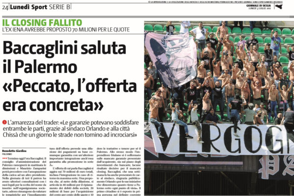 Giornale di Sicilia: “Baccaglini saluta il Palermo: «Peccato, l’offerta (70 milioni?) era concreta»”