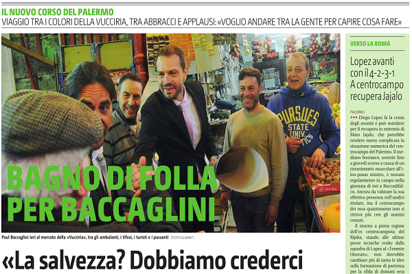 Giornale di Sicilia: “Bagno di folla per Baccaglini. «La salvezza? Dobbiamo crederci. Anche il Barcellona…»”
