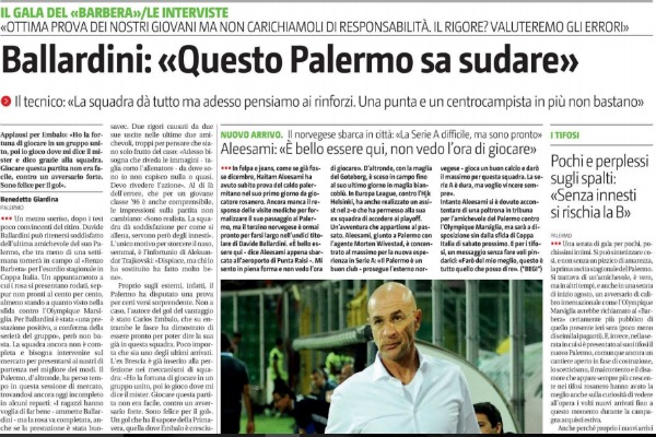 Giornale di Sicilia: “Ballardini: «Questa squadra sa sudare e dà tutto, ma adesso pensiamo ai rinforzi»”