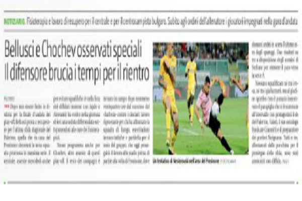 L’edizione odierna de “Il Giornale di Sicilia” ha riportato le ultime sugli infortunati Chochev e Bellusci. Ecco quanto si legge: