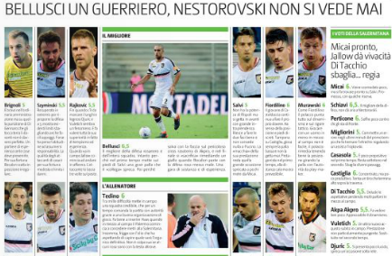 Brignoli 5, Szyminski 5,5, Rajkovic 5,5, Bellusci 6,5, Salvi 5, Fiordilino 6, Murawski 6, Mazzotta 5,5, Trajkovski 5,5, Moreo 5,5, Nestorovski 5, Haas 5,5. Tedino 6.