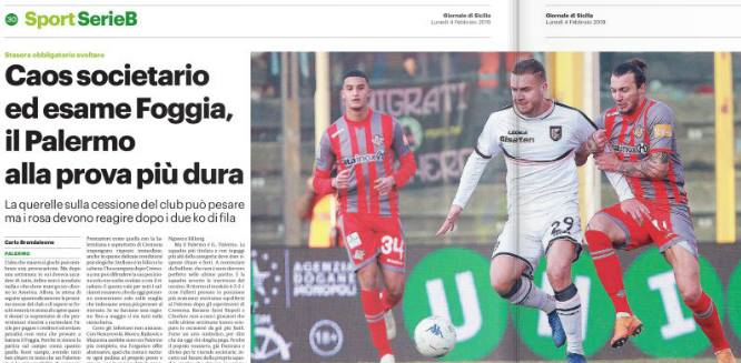 Giornale di Sicilia: “Caos societario ed esame Foggia, il Palermo alla prova più dura”