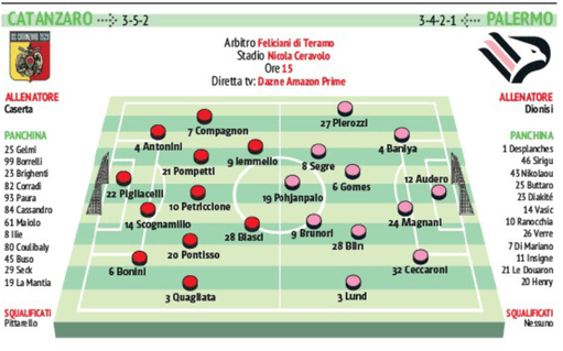 Giornale di Sicilia: “Catanzaro-Palermo, le probabili formazioni”