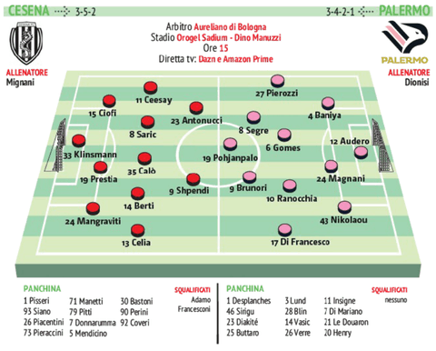 Giornale di Sicilia: “Cesena-Palermo, le probabili formazioni”