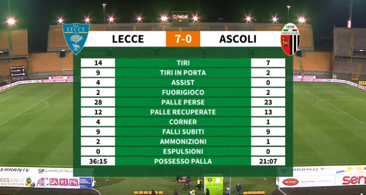 Che batosta quella subita dall’Ascoli a Lecce. I salentini davanti il proprio pubblico hanno vinto per ben 7-0. L’edizione odierna de “Il Giornale di Sicilia” definisce “clamoroso” questo pesante risultato maturato ieri. La valanga di rei inizia con Tabanelli che sblocca il risultato dopo quattro minuti sfruttando una sponda di La Mantia, poi al quarto d’ora tocca a Petriccione raddoppiare su assist di Mancosu. La Mantia cala il tris al 18’ ribadendo in rete un cross di Calderoni e al 26’arriva la gloria anche per Mancosu. Alla mezz’ora, l’Ascoli va in totale blackout e Brosco atterra La Mantia in area: è rigore e Falco non ha pietà. La ripresa riparte da un 5-0 che, per quanto visto in campo, non è affatto esagerato. Nel secondo tempo, gli uomini di Liverani non frenano, anzi: sesta rete con Tabanelli, che festeggia così la sua personalissima doppietta, dopo esulta per il bis anche Mancosu, che sigla la rete del definitivo 7-0 dinanzi ad oltre 12 mila tifosi estasiati. Ecco gli highlights: