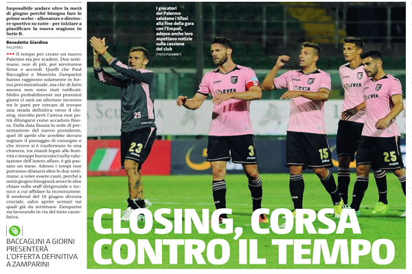Giornale di Sicilia: “Closing, corsa contro il tempo. Entro il 10 giugno…”