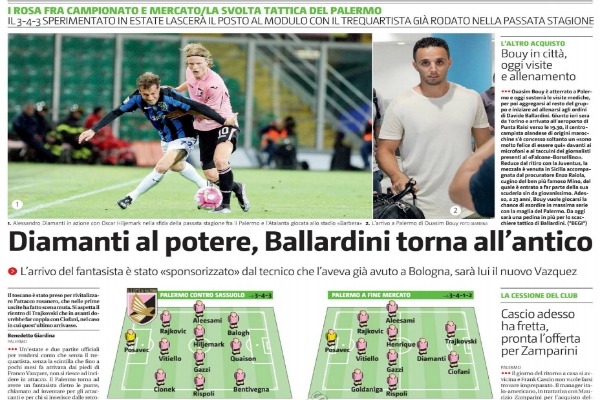 Giornale di Sicilia: “Con Diamanti al potere, Ballardini torna all’antico: riecco il 3-4-1-2. L’arrivo del fantasista sponsorizzato dal tecnico, è lui il nuovo Vazquez”