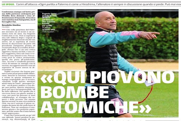 Giornale di Sicilia: “Corini all’attacco: «Qui piovono bombe atomiche»”