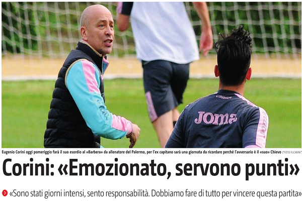 Giornale di Sicilia: “Corini: «Emozionato, ma servono punti. Faremo di tutto per vincere»”