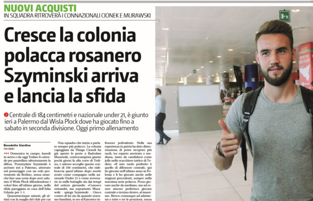 Giornale di Sicilia: “Cresce la colonia polacca rosanero Szyminski arriva e lancia la sfida”
