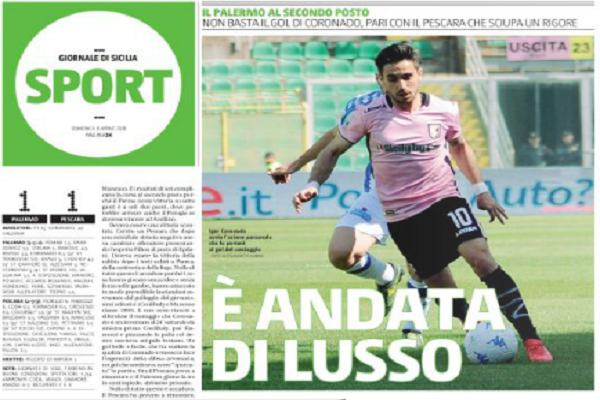 L’edizione odierna de “Il Giornale di Sicilia” ha analizzato la sfida di ieri pareggiata dal Palermo contro il Pescara: