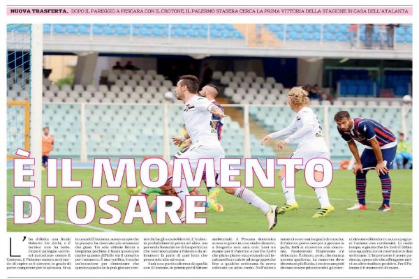 “L’ha definita una finale Roberto De Zerbi, e il tecnico non ha torto. Dopo il pareggio «accresci autostima», contro l’Atalanta, il Palermo questa sera avrà la modo di capire se è davvero in grado di poter competere per la salvezza. Sarà una partita diversa da quella contro il Crotone, in primis per il fattore ambientale. Nell’ultimo turno ci sono stati segnali di crescita. E’ chiaro che ancora manca qualcosa. La manovra deve diventare più fluida. Ci vuole tempo è giusto che De Zerbi l’abbia, ma per il Palermo è arrivato il momento di osare”. Questo ciò che si legge sull’edizione odierna de “Il Giornale di Sicilia”.