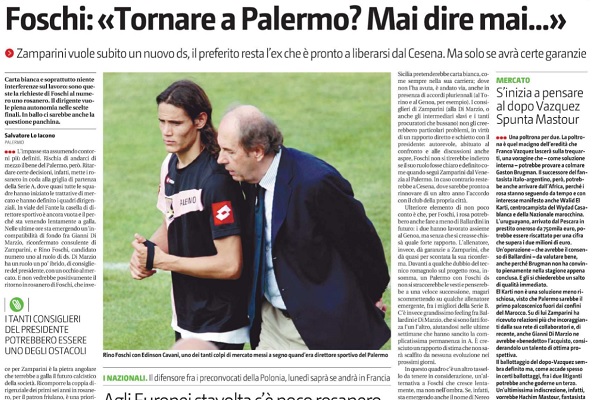 Giornale di Sicilia: “Foschi: «Tornare a Palermo? Mai dire mai…». Zamparini vuole subito un nuovo ds, l’ex è pronto a liberarsi dal Cesena. Ma solo se avrà certe garanzie…”