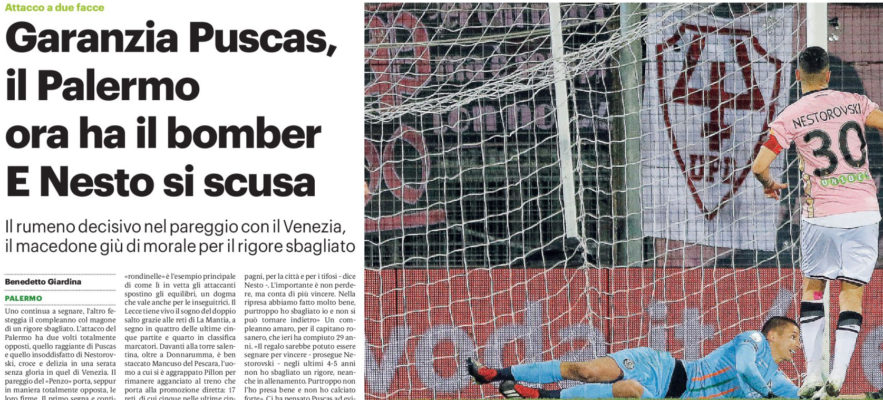 Giornale di Sicilia: “Garanzia Puscas, il Palermo ora ha il bomber. E Nesto si scusa”