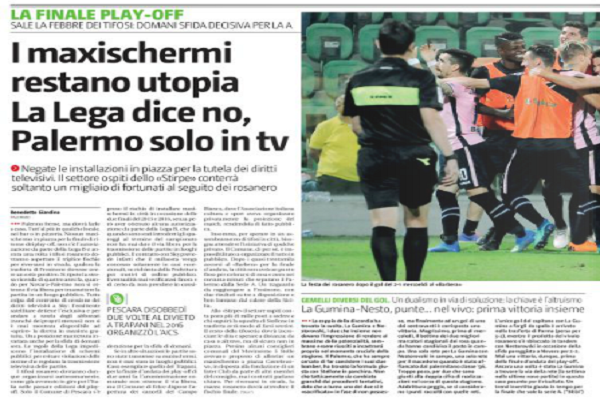 Giornale di Sicilia: “I maxischermi restano utopia. La Lega dice no, Palermo solo in tv”