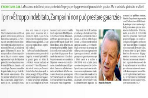 Giornale di Sicilia: “I pm: «Zamparini troppo indebitato, non può prestare garanzie»”