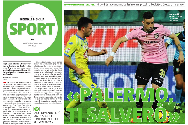 Giornale di Sicilia: “I propositi di Nestorovski: «Palermo, ti salverò»”