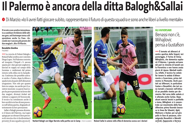 Giornale di Sicilia: “Il Palermo è ancora della ditta Balogh&Sallai. Di Marzio: «Sono il futuro»”