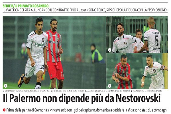 L’edizione odierna de “Il Giornale di Sicilia” scrive in merito al rinnovo contrattuale di Nestorovski, ma non solo, anche sulla vittoria conquistata a Cremona, senza il gol del numero 30. Ecco quanto si legge:
