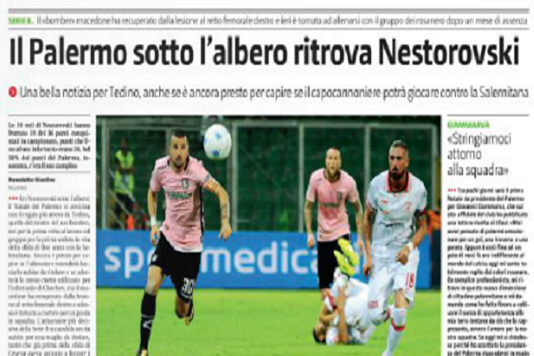 Giornale di Sicilia: “Il Palermo sotto l’albero ritrova Nestorovski”