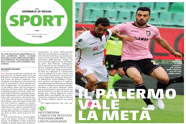 Giornale di Sicilia: “Il Palermo vale la metà. Il campionato negativo incide sulle quotazioni, quasi tutti i rosa hanno perso valore”