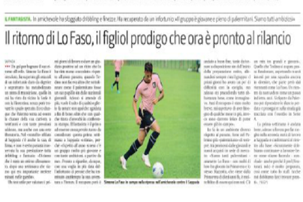 “Un gol per bagnare il suo ritorno all’ovile. Simone Lo Faso è cresciuto, ha superato gli ostacoli e un infortunio duro da digerire, ma soprattutto ha metabolizzato un anno di transizione, quello in cui ha visto da vicino la Serie A con la Fiorentina, senza però trovare lo spazio sperato. Ecco dunque che il Palermo torna ad essere la chance della sua carriera, a vent’anni e con tante pressioni addosso, ma anche con una rete liberatoria. Nel «ventello» rifilato al Sappada c’è anche la sua, di firma, e non è certo passata inosservata la sua prestazione tutta dribbling e fantasia: «Diciamo che è stato un ottimo allenamento, dopo una settimana che siamo qui era importante mettere minuti nelle gambe». […]”. L’edizione odierna del “Giornale di Sicilia” analizza così il momento di Simone Lo Faso, talento rientrante dalla Fiorentina che si candida ad essere uno dei punti fermi della prossima stagione rosanero. Umiltà e testa bassa, è questo ciò che chiede Tedino a Simone Lo Faso. Dopo averlo “coccolato” nel ritiro dello scorso anno, adesso il tecnico friulano vuole maggiore impegno e dedizione da parte del giovane palermitano, consapevole dell’importanza della stagione che lo attende. Il fantasista ne è consapevole e apprezza il lavoro duro del ritiro di Sappada: «Rispetto allo scorso anno c’è un gruppo giovane e con tante ambizioni, a partire da me» – Il grave infortunio al perone è ormai dimenticato, ma qualche difficoltà c’è stata, come ammette il classe ’98: «Nei primi giorni ho accusato qualche problema alla caviglia, ma adesso mi sento molto bene. Pensavo di dover attendere qualche mese prima di ritornare in forma, ma adesso sono felice di essere tornato in campo» – Tanti palermitani in squadra rispetto alle annate precedenti e questo può essere un pregio: «E’ vero, siamo tanti palermitani, con alcuni di loro ho già giocato in Primavera, poi c’è anche Mazzotta che è felice di essere con noi» – Tuttavia, il ritiro non è ancora finito: «E’ necessario continuare a lavorare come stiamo facendo, abbiamo la fortuna di avere uno staff molto preparato che ci segue e noi dobbiamo farci sempre trovare pronti».