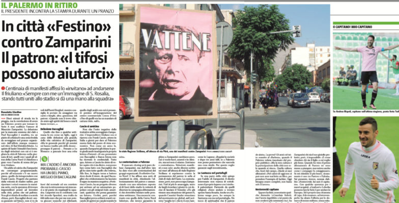 Giornale di Sicilia: “In città «Festino» contro Zamparini. Il patron: «I tifosi possono aiutarci»”