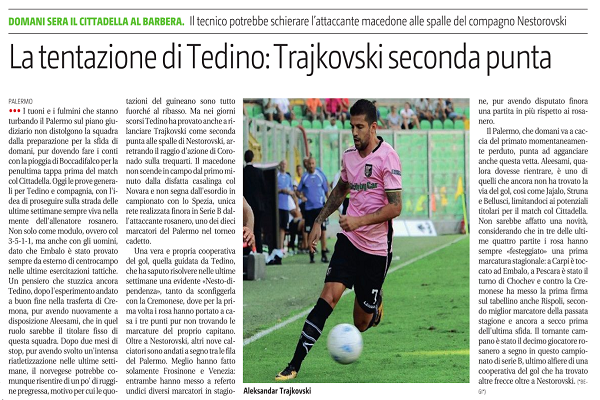 Giornale di Sicilia: “La tentazione di Tedino: Trajkovski seconda punta”
