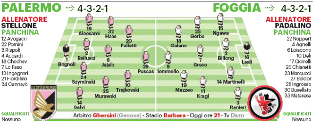 Giornale di Sicilia: “Le probabili formazioni di Palermo-Foggia”