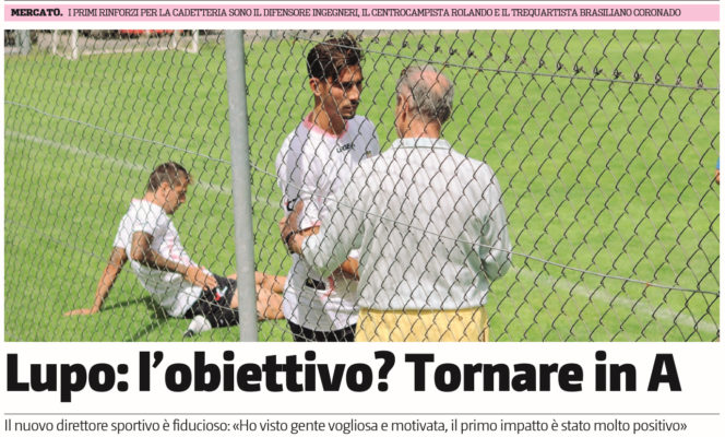Giornale di Sicilia: “Lupo: «L’obiettivo? Tornare in A». Il nuovo direttore sportivo è fiducioso: «Ho visto gente vogliosa e motivata, il primo impatto è stato molto positivo»”