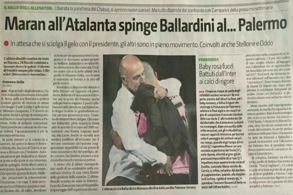 Giornale di Sicilia: “Maran all’Atalanta spinge Ballardini al…Palermo”