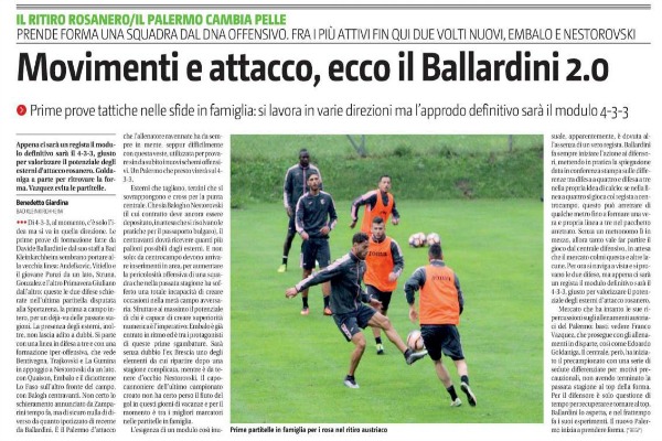 Giornale di Sicilia: “Movimenti e attacco, ecco il Ballardini 2.0”