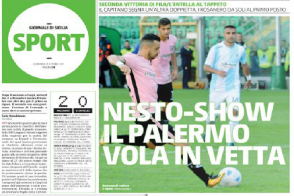 Giornale di Sicilia: “Nesto-show, il Palermo vola in vetta”