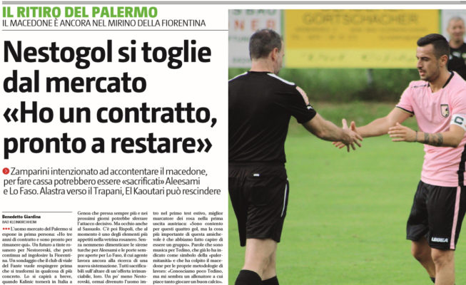 Giornale di Sicilia: “Nestogol si toglie dal mercato: «Ho un contratto, pronto a restare». Per fare cassa potrebbero essere «sacrificati» Aleesami e Lo Faso”
