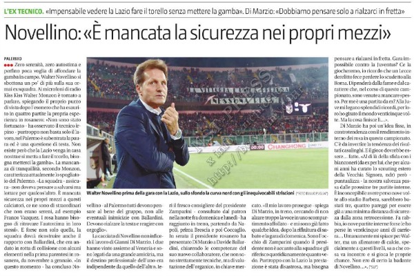 Giornale di Sicilia: “Novellino critica la sua ex squadra: «Assurdo vedere la Lazio fare il torello al Barbera, è mancata la sicurezza nei propri mezzi»”