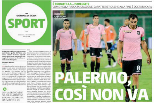 L’edizione odierna de “Il Giornale di Sicilia” ha analizzato la falsa partenza del Palermo contro Salernitana e Cremonese, in entrambi i casi finita in parità. Ed è proprio il pareggio, il risultato che nella scorsa stagione è costato caro ai rosanero. Ecco un estratto: