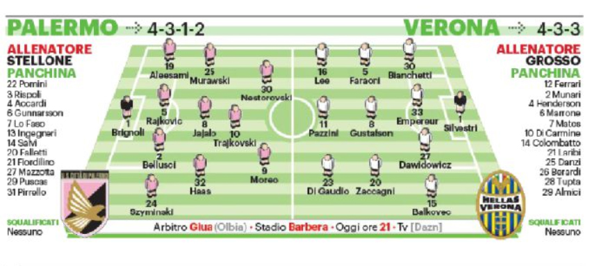 Giornale di Sicilia: “Palermo-Hellas Verona, le probabili formazioni”