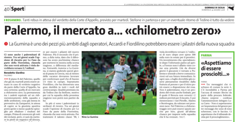 Il piano B del Palermo, che potrà essere attuato in caso di verdetto negativo da parte della Corte d’Appello, ha una certezza: quella di un mercato a chilometro zero. Se il Palermo dovesse restare nel campionato cadetto allora ci sarà un ridimensionamento della squadra e delle ambizioni. Ma prima di conoscere l’esito dei vari reclami ci sarà da formare una rosa all’altezza. Ma con quale squadra si presenterà il Palermo al ritiro? Al momento di certezze non se ne hanno nemmeno per la panchina: Stellone non resterà a giocarsi un piazzamento d’onore, mentre il ritorno di Tedino è tutto da vedere. Poi c’è un organico da modellare, partendo da chi è cresciuto nelle giovanili del Palermo. Non La Gumina, che ha molto mercato e potrebbe essere sacrificato. Mentre Accardi e Fiordilino potrebbero essere i pilastri del nuovo Palermo. Al rientro dalle vacanze entrambi dovranno lavorare per riconfermare quanto fatto vedere nella passata stagione. Soprattutto Fiordilino, che ha dimostrato una grande duttilità giocando in più ruoli. In più ci sono i palermitani di rientro dai vari prestiti. Tra tutti c’è Lo Faso che rientrerà dalla Fiorentina. La società viola non sembra intenzionata a versare i 2,7 milioni di euro previsti per il riscatto. Già da diversi giorni il giocato a Palermo e attende un comunicato sul suo futuro immediato. Rientrerà in Sicilia anche Carlos Embalo, per il quale il Brescia non verserà i 2 milioni previsti per il riscatto. E poi rientreranno alla base i vari Pirrello, Alastra e Bentivegna. Nel Palermo a chilometro zero può esserci spazio anche per loro.