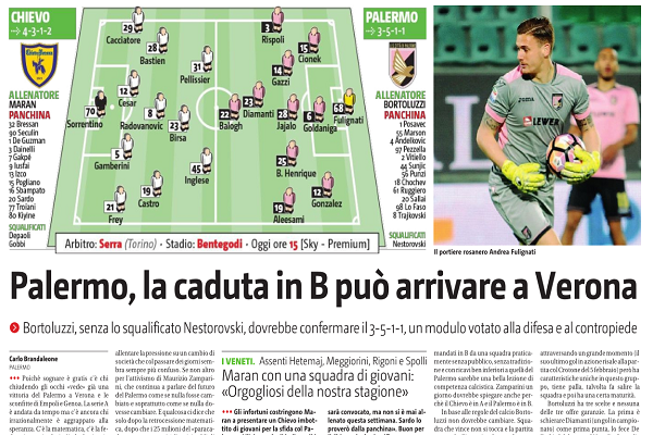“Poiche sognare e gratis c’è chi chiudendo gli occhi «vede» già una vittoria del Palermo a Verona e le sconfitte di Empoli e Genoa. La serie A andata da tempo ma c’é ancora chi irrazionalmente aggrappato alla speranza. C’é la matematica, c’é la fede nei propri colori, c’é che la vittoria sulla Fiorentina ha restituito un po’ di dignità a un gruppo che sembrava allo sbando. II rispetto di se stessi e della maglia impone di giocarsela, ignorando il fatto che con diciannove punti dopo 34 giornate e davvero difficile pensare di salvarsi. Bisognava pensarci prima ma chi avrebbe dovuto farlo s’è girato dall’altra parte. Anche oggi il conto da tenere è semplice. Se dopo le partite del pomeriggio, con tre gare ancora da giocare, il Palermo avrà più di nove punti di ritardo sulla quartultima sarà retrocesso anche aritmeticamente. Pensare per un giorno al campo, a una partita disperata, forse l’ultima vera partita in serie A del Palermo chissà per quanti anni, serve anche ad allentare la pressione su un cambio di società che col passare dei giorni sembra sempre più confuso. Se non altro per l’attivismo di Maurizio Zamparini, che continua a parlare del futuro del Palermo come se nulla fosse cambiato e soprattutto come se nulla dovesse cambiare. E qualcosa ci dice che solo dopo la retrocessione matematica, dopo che i 25 milioni del «paracadute» saranno certi (gli unici soldi di cui si sente l’odore), si potranno mettere le carte a posto per il passaggio delle quote a Baccaglini. Forse l’intoppo è stato proprio la vittoria sulla Fiorentina. La gara odierna presenta ovvie insidie per i ventidue punti in più in classifica dei veneti e a poco serve rilevare che il Chievo, salvo da tempo, non avrebbe motivi per dare il massimo. Ha complicato la vita al Genoa domenica scorsa e s’impegnerà anche col Palermo. Non una squadra di bambini quella di Maran. Sorrentino, Dainelli e Pellissier hanno 38 anni, Cesar 35, Gamberini 36, Frey 33, età in cui si sa stare in campo e si tiene assai alla propria faccia. E a Verona il Palermo non ha mai ricevuto regali. […]”. Questo quanto riportato da “Il Giornale di Sicilia”.