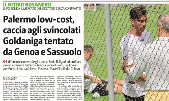 Giornale di Sicilia: “Palermo low-cost, caccia agli svincolati. Goldaniga tentato da Genoa e Sassuolo. Il punto su tutte le trattative”