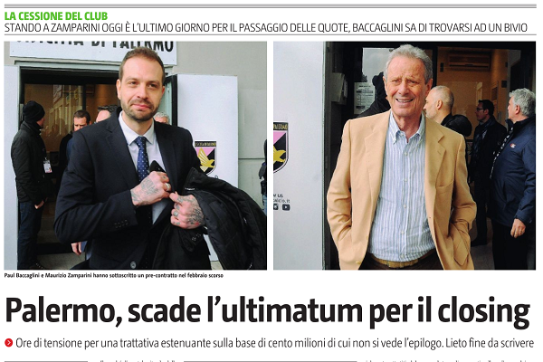 Giornale di Sicilia: “Palermo, scade l’ultimatum per il closing. Ore di tensione per una trattativa estenuante”