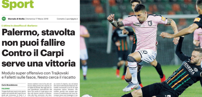 Giornale di Sicilia: “Palermo, stavolta non puoi fallire. Guai a cadere nel tranello del Carpi”