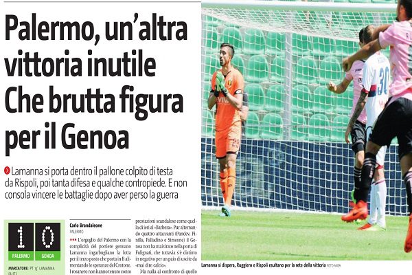 Giornale di Sicilia: “Palermo, un’altra vittoria inutile. Che brutta figura per il Genoa!”