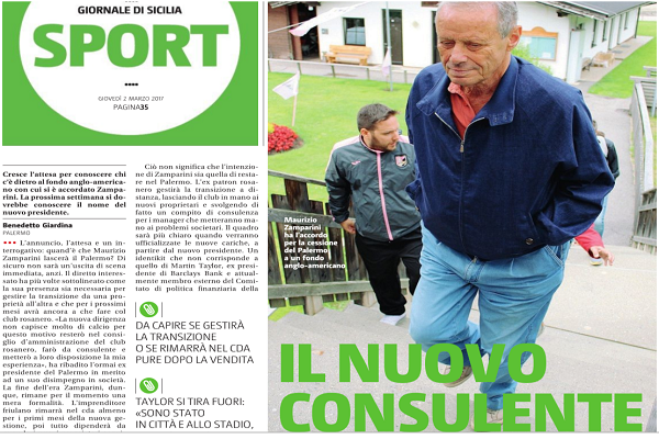 Giornale di Sicilia: “Palermo, Zamparini il nuovo consulente”
