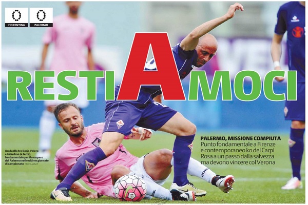 “Quattordici già in vacanza (qualcuna con le ossa rotte…) sei a giocarsi quello che resta. E non sono briciole. Anzi. In ballo ci sono le vagonate di milioni di euro della Champions, l’Europa dei più piccoli e la salvezza. Altro che bruscolini. Cominciamo dalla coda, perché il discorso riguarda troppo da vicino il Palermo. Sembrava all’inferno tre partite fa, ha un piede e mezzo in A quando ne manca una per far calare il sipario. Basterà ottenere Io stesso risultato del Carpi domenica prossima al «Barbera» contro il Verona, che come sanno tutti la A l’ha Iasciata da qualche settimana. Ciao anche al Frosinone che se ne torno arrivato a sorpresa. Dopo il mezzo miracolo fatto dal Palermo proprio con i ciociari, con la Samp e la Fiorentina (il più dolce dei pareggi, ieri), ne sene un altro con il Verona. Guai a pensare che sia già fatta. I gialloblù ieri hanno vinto con ln Juve! E qualche settimana fa avevano fatto lo stesso col Milan. Insomma il Verona non ha mollato, me se il suo campionato fosse iniziato adesso… La storia del calcio, poi, insegna che le beffe arrivano quando meno te lo aspetti. Ieri l’Ajax ha perso il titolo in Olanda pareggiando contro la penultima, l’Atletico Madrid ha dato l’addio alla possibilità di lottare fino all’ultimo per la Liga perdendo addirittura con il Levante già retrocesso. Insomma il Palermo farà bene a ripassare la storia e a trarre insegnamento. Un aiuto già c’è stato dalla Lazio e da Marchetti, aspettarsene un altro sarebbe troppo. Bisogna fare da soli. […]”. Questo quanto si legge sull’edizione odierna de “Il Giornale di Sicilia”.