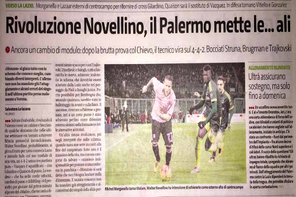 Giornale di Sicilia: “Rivoluzione Novellino, il Palermo mette le…ali”